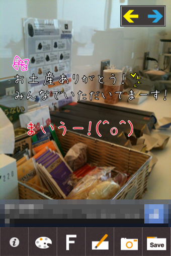 TypoBoxの操作はとてもシンプルですが、文字の改行はできないのでバランスを見ながら調節していく必要があります。また、現段階では日本語対応フォントが少ないのも惜しい点です。スタンプも何種類かはセットされていますが数は多くありませんので、デコレーションを重視したい人はプリ系写真デコ DECOPICや、ShibuyaCameraを検討してみるといいでしょう。
